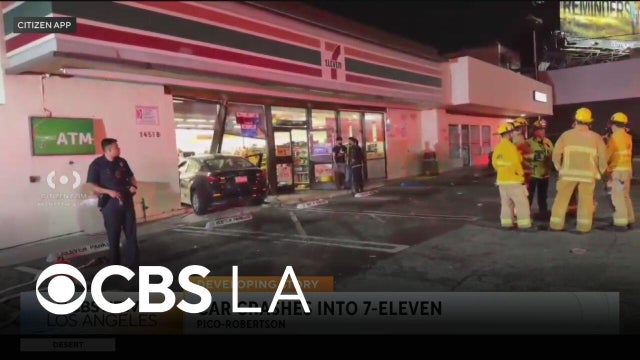 The driver of a vehicle that crashed into a 7-Eleven store in the Pico-Robertson area was taken to a hospital with minor injuries. No one inside the store was injured.