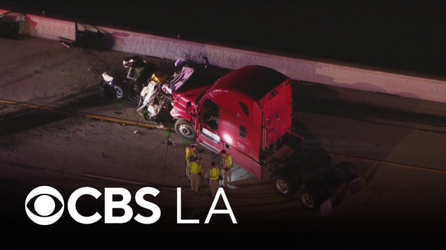 Two people were killed when a semi-truck and a car collided on the 210 Freeway in the Sunland region of the San Fernando Valley on Friday night.