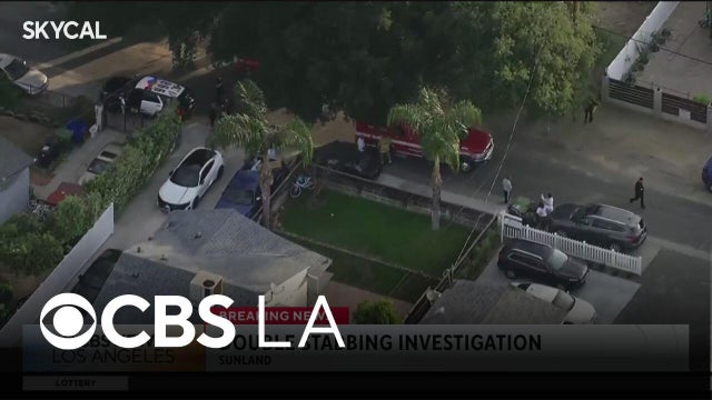 LAPD officers continue to search for a suspect after two people, a man and a 10-year-old girl, were stabbed in a residential area of Sunland. The victims were taken to a hospital for their injuries.