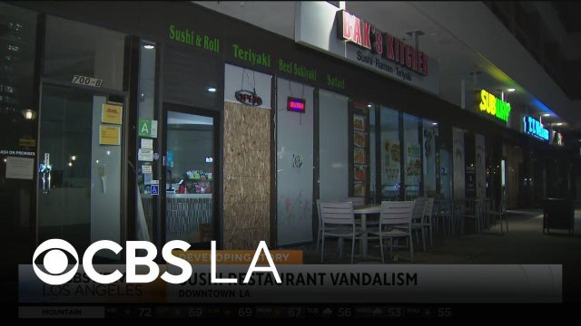 LAPD says nothing was stolen from Bak's Kitchen sushi restaurant downtown LA, after exterior windows to the business were shattered.