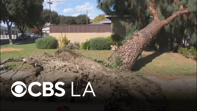 Fullerton's ferocious winds toppled trees onto homes, cars and trucks, jolting neighbors awake early Wednesday morning. Michele Gile reports.