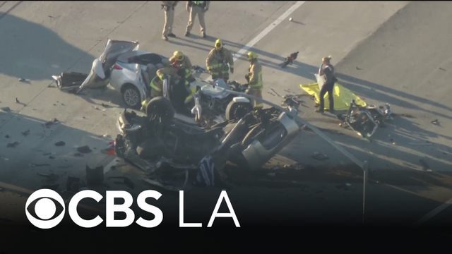 California Highway Patrol officers say that one of the cars drove over a barrier and into oncoming traffic where they collided head-on with another vehicle.
