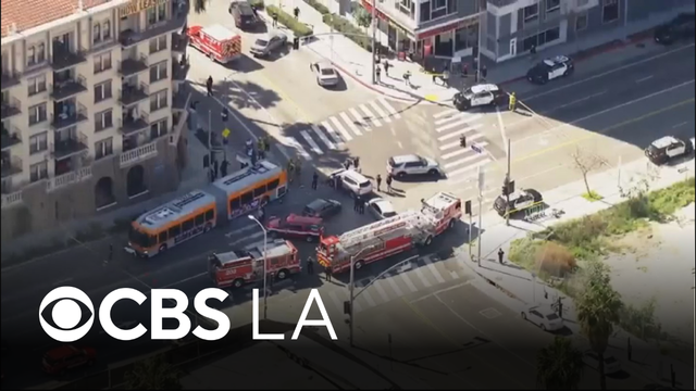 Burglary suspects crashed into a Los Angeles Metro bus in the Westlake District, leaving several people hurt on Friday.
