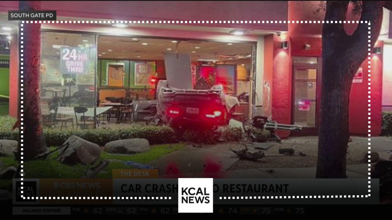 A suspected DUI driver crashes into a South Gate Jack in the Box