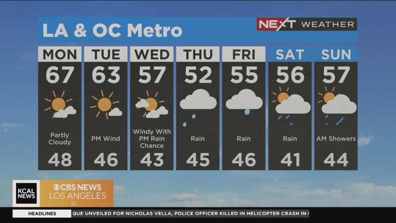 Partly Cloudy Monday, high 60s/low 70s. Blast of Arctic air on the way with strong wind and chance of rain mid-week through the weekend.