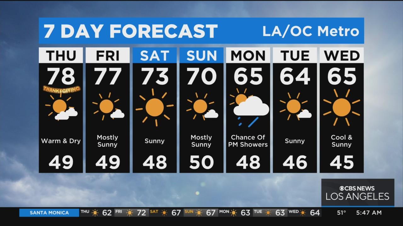 Warm Thanksgiving sees strong Santa Ana winds in some areas, calming down after sunset. Red Flag Warning in effect, high fire danger until 11 a.m. Friday.