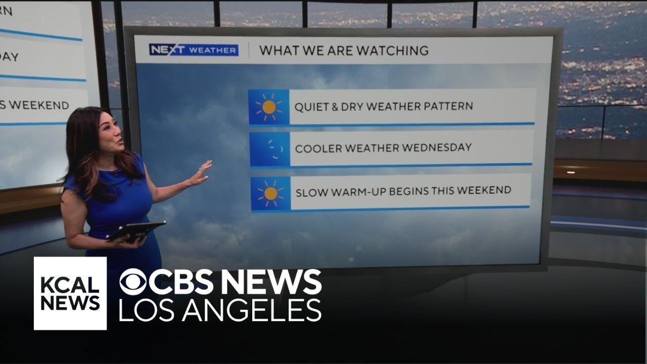 The weather in Southern California will be quiet and dry, with cooler weather coming Wednesday.