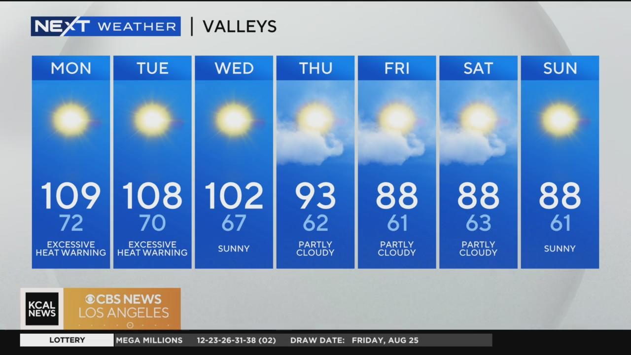 Very hot start to the week, with LA/OC reaching mid-90s Monday, valleys/IE in the low triple digits. Dense fog possible at beaches. Cooling down toward end of the week. Heat warnings, advisories in effect until Tuesday night.