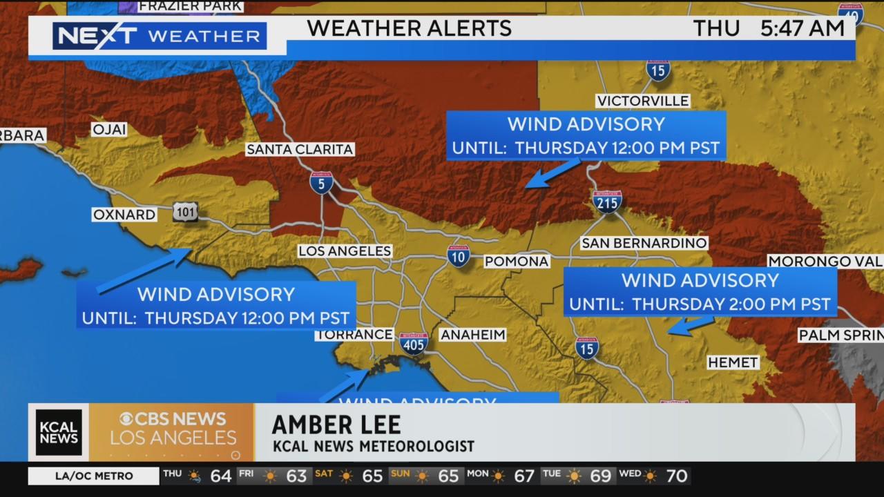 Strong winds and a chance for showers expected on Thursday. A wind advisory will impact most of Los Angeles County until 2 p.m.