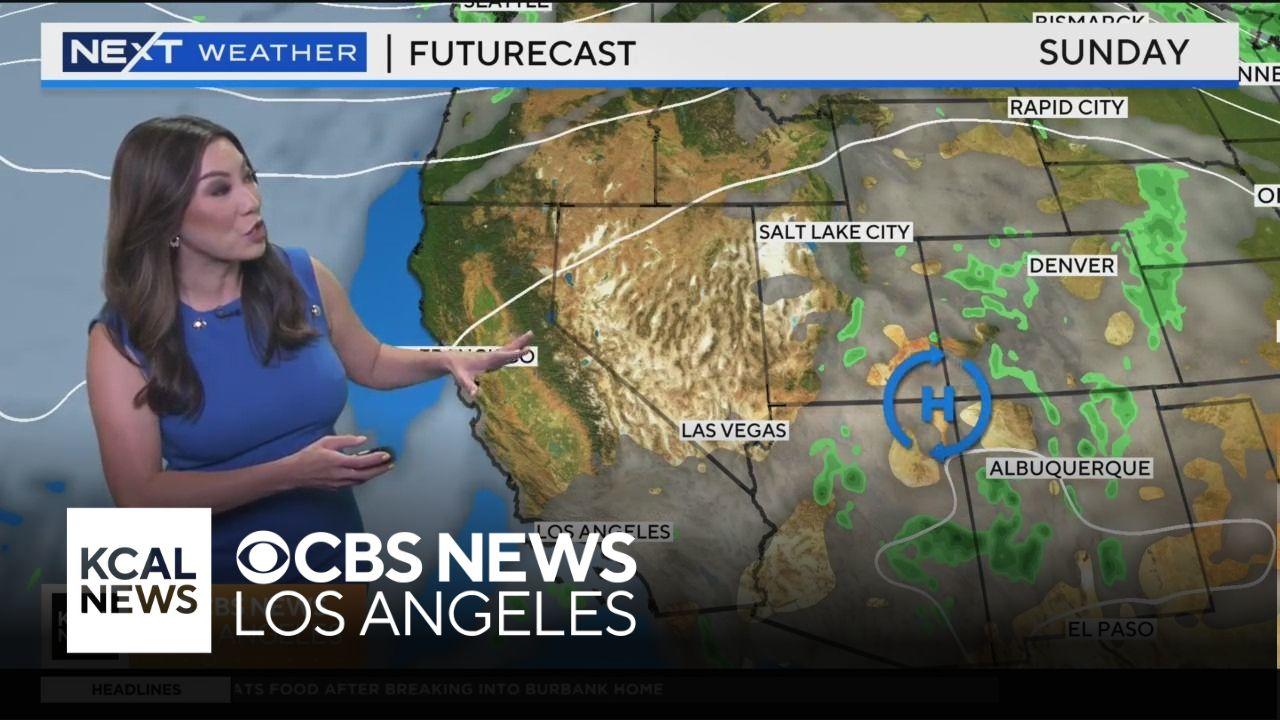 Slightly warmer conditions with highs rising to the low 80s from Southern California's beaches to downtown Los Angeles while peak temperatures hover around the 80s to mid-90s across the Valleys.
