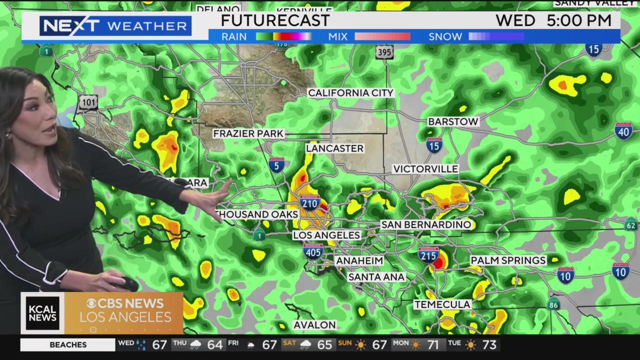 Shattered rain showers will be happening throughout the day with some thunderstorms expected this afternoon. Temperatures will be in the 60s at the beaches and 70s for downtown LA.