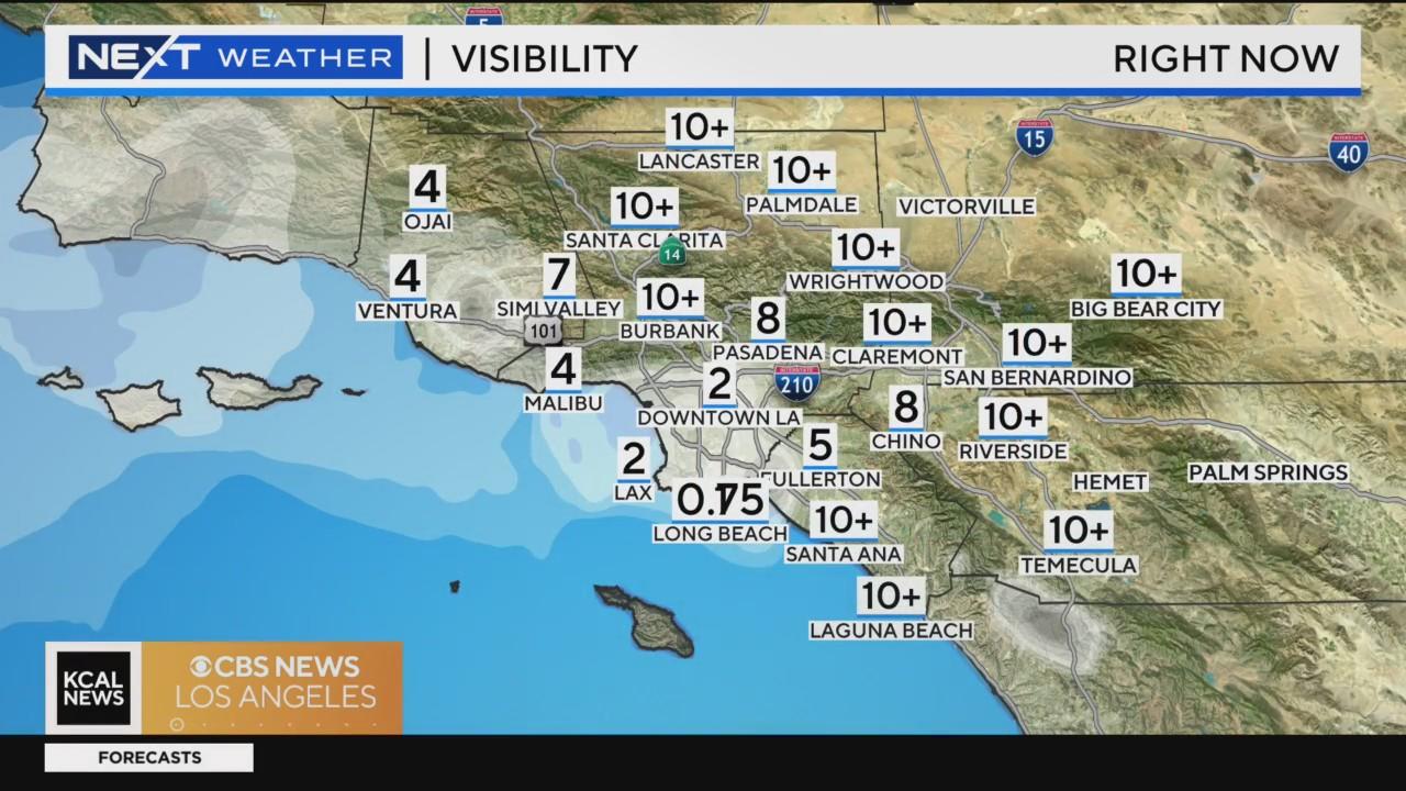 Low clouds and foggy morning before a sunny afternoon. Cooling trend begins with temperatures in the 70s at the beaches, 80s for downtown LA and 90s in the Valleys.