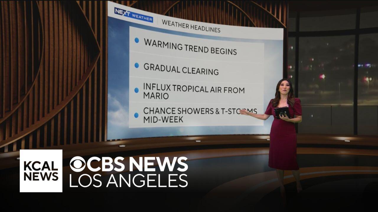 Southern California will begin to warm up again with an influx of tropical air from Mario. There will be a chance of showers and some thunderstorms by the middle of the week.