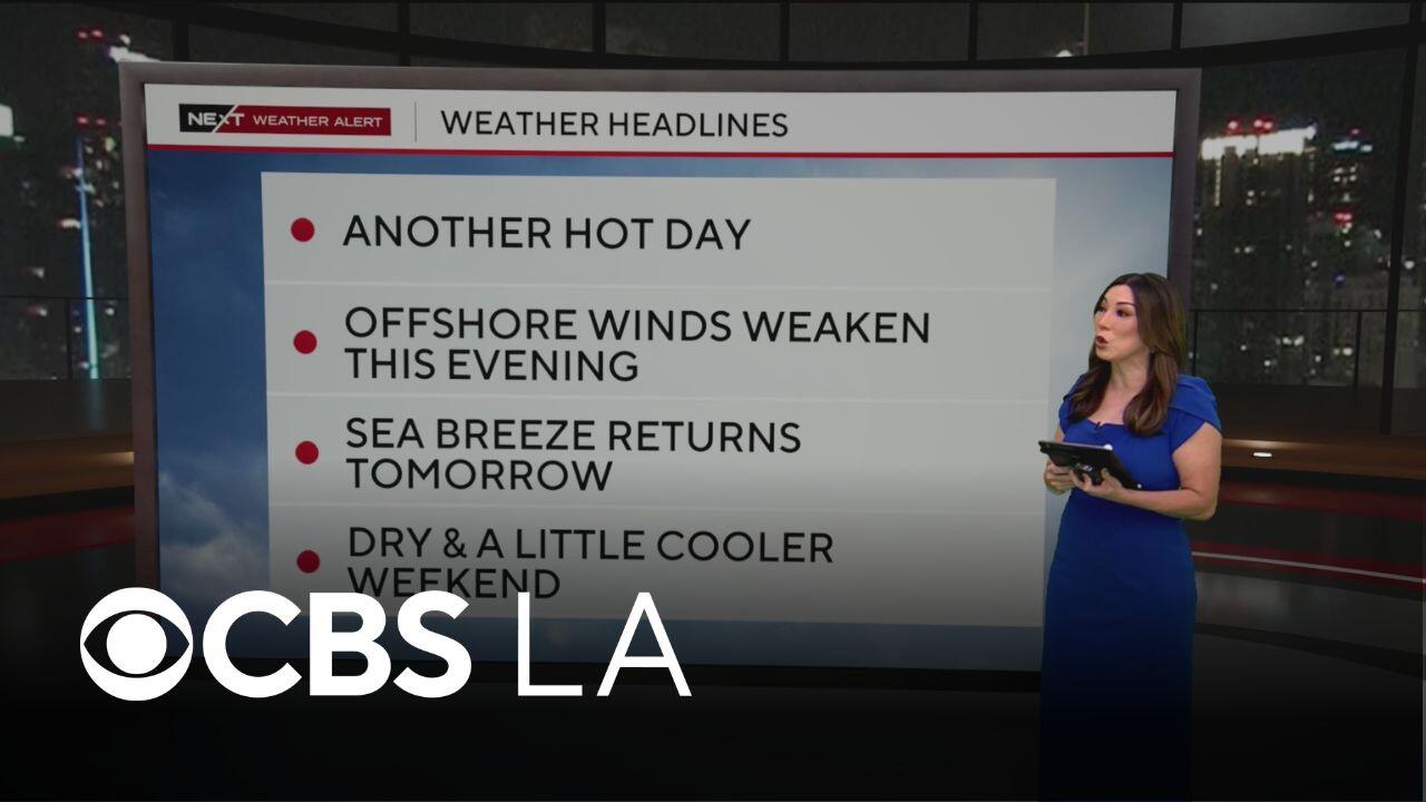 The red flag warning continues in Southern California as Santa Ana winds and hot temperatures impact the area.