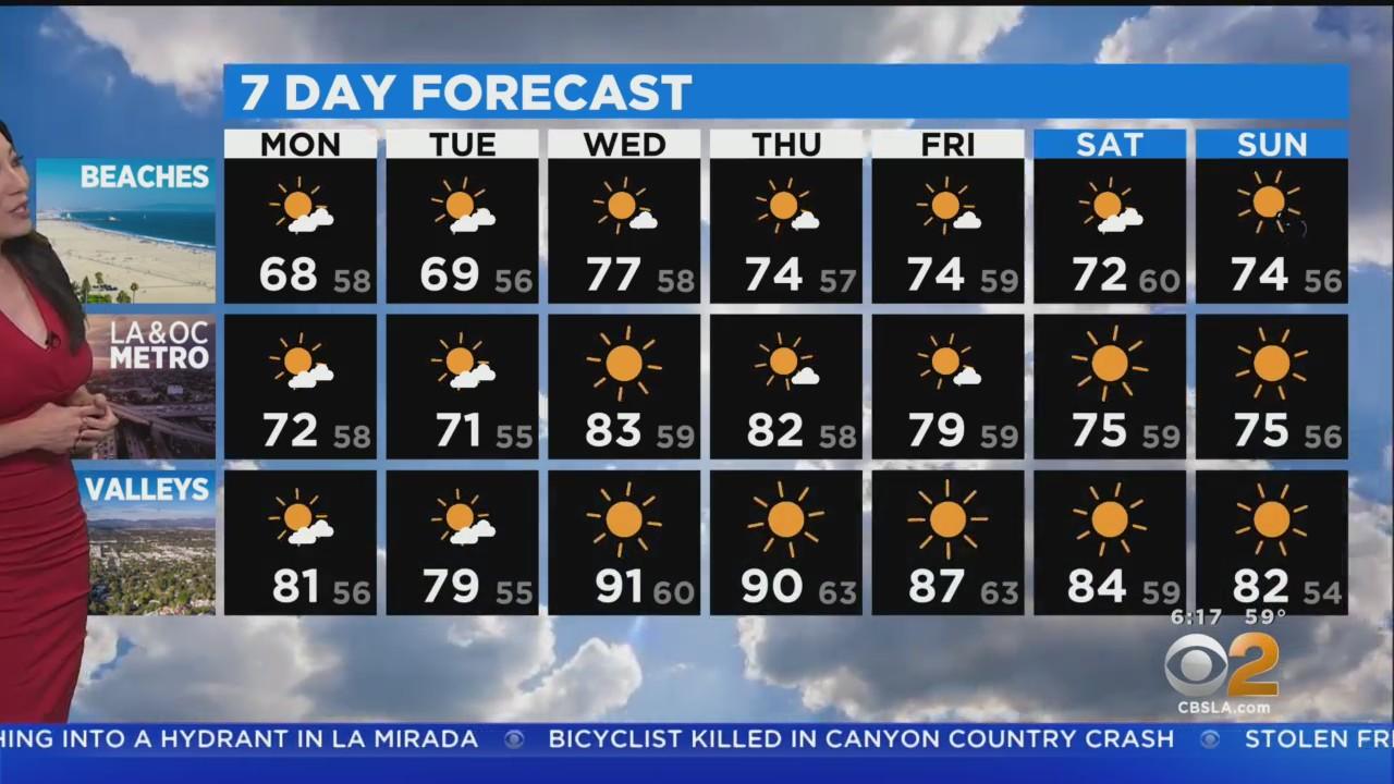 A little cooler, but still sunny Monday. A high of 68 for the beaches and 81 for the valleys.