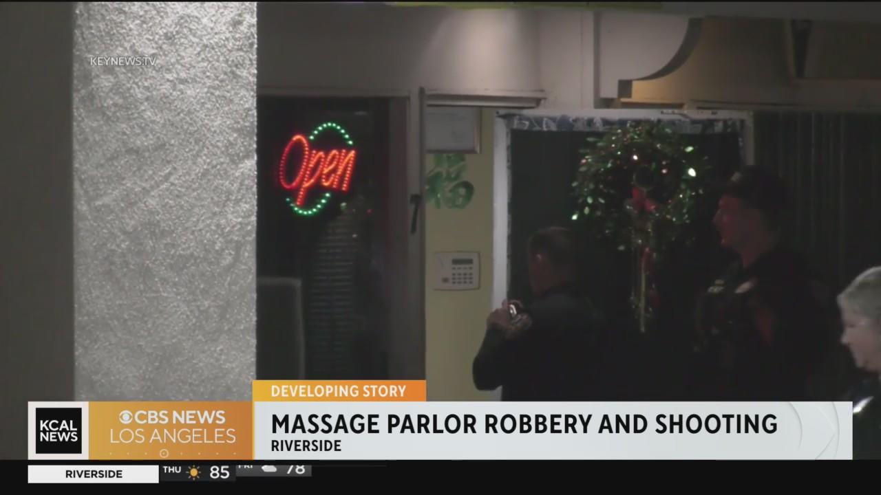 An employee at a Riverside massage business shot at two attempted robbers