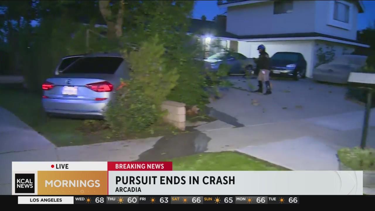 Arcadia pursuit suspect crashes into Covina tree; suspect at large