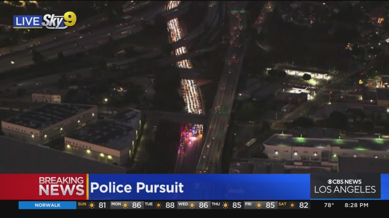 Two females and one male were being chased by Fullerton Police on Sunday for a burglary that took place in Orange County. Sky9 was over the scene as two suspects were detained near the 10 Freeway in Downtown Los Angeles near the East LA interchange.