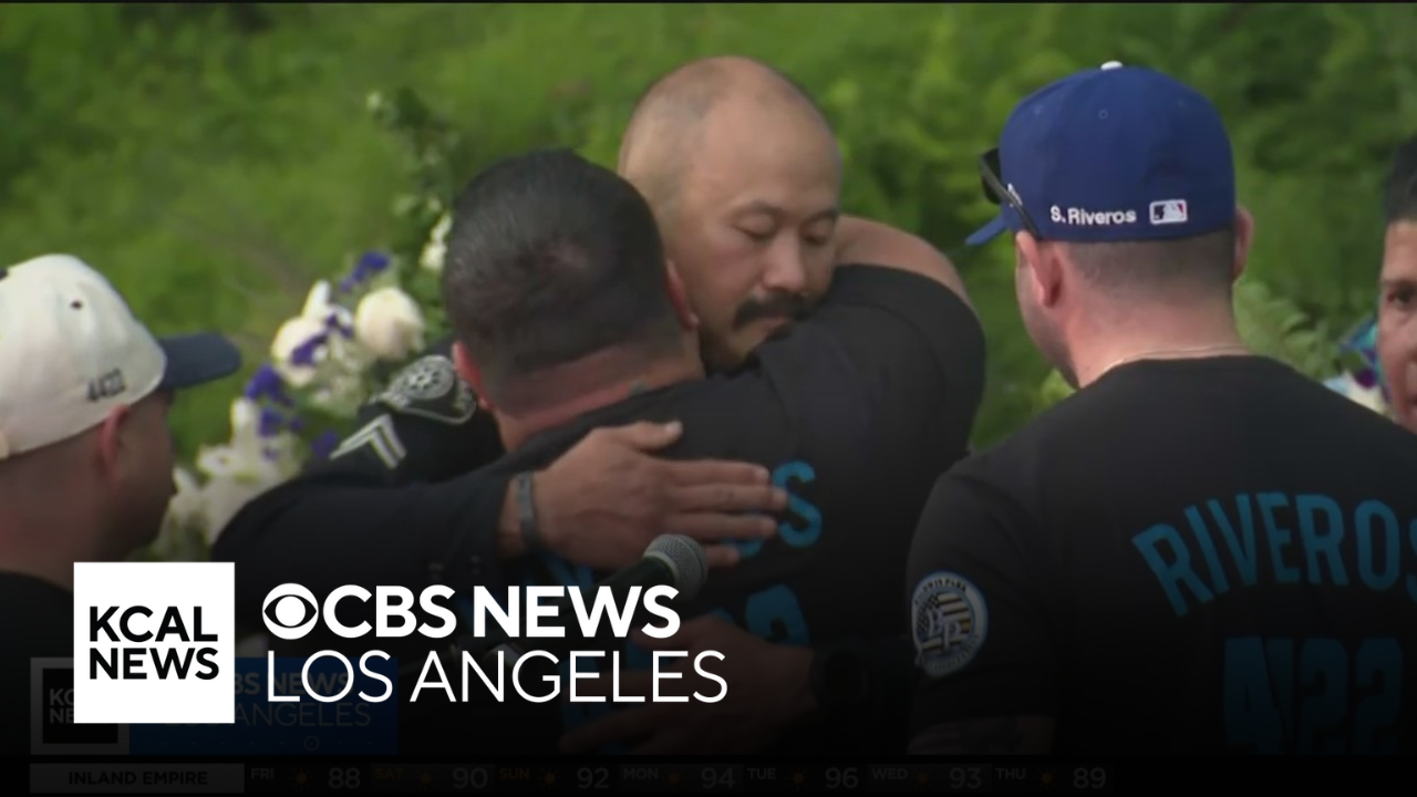 Nicole Comstock reports from Baldwin Park, where police officers and community members gathered at a candlelight vigil for Officer Samuel Riveros, who was shot and killed when responding to the scene of a shooting last weekend.