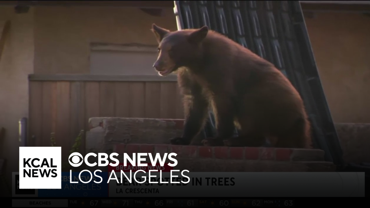 Nicole Comstock reports from La Crescenta, where she provides the latest details on a naughty, but extremely cute, bear cub that was spotted dumpster diving and climbing trees near two schools on Tuesday afternoon.