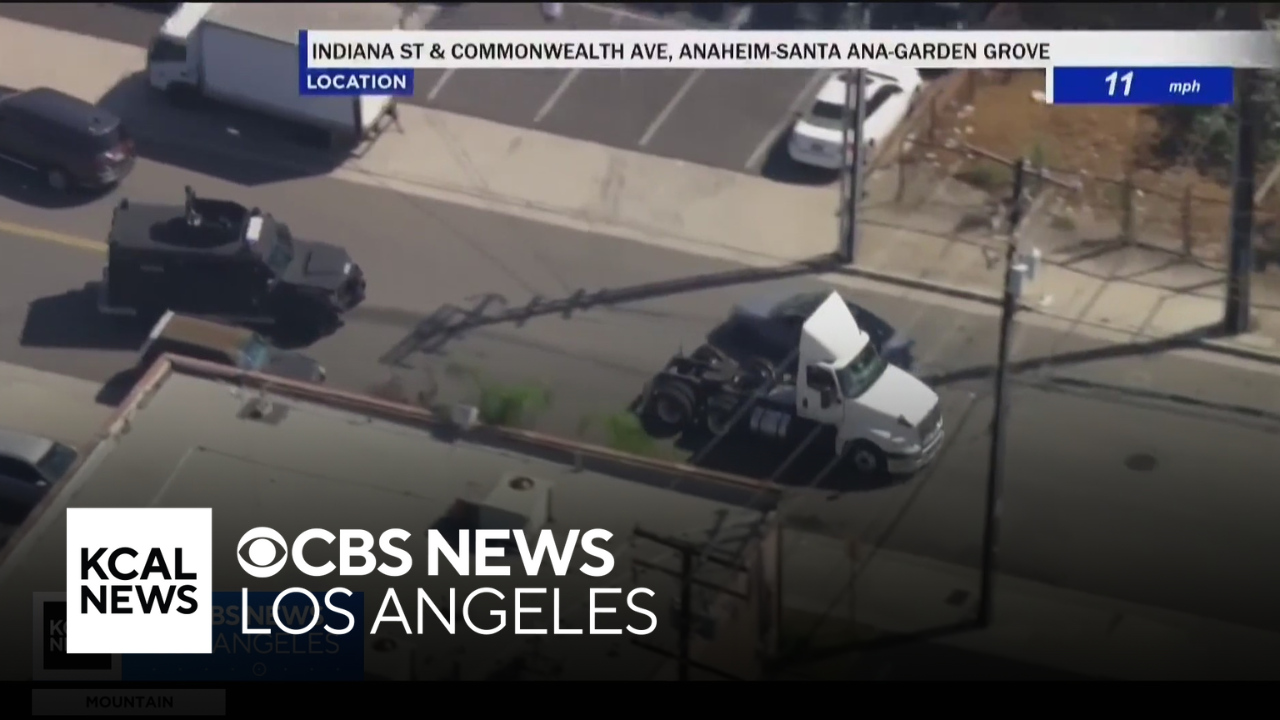 A wild multi-county pursuit came to a sudden end in Orange County on Wednesday afternoon when a BearCat slammed into an allegedly stolen big rig out of the Inland Empire. Hunter Sowards reports.