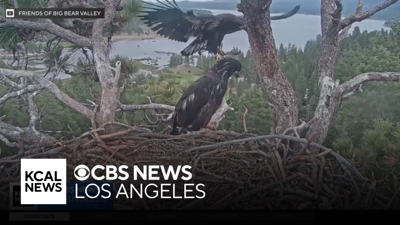 Nicole Comstock provides an update on the quickly growing bald eaglets from Big Bear, who are expected to spread their wings and fly from their nest for the first time any day now.