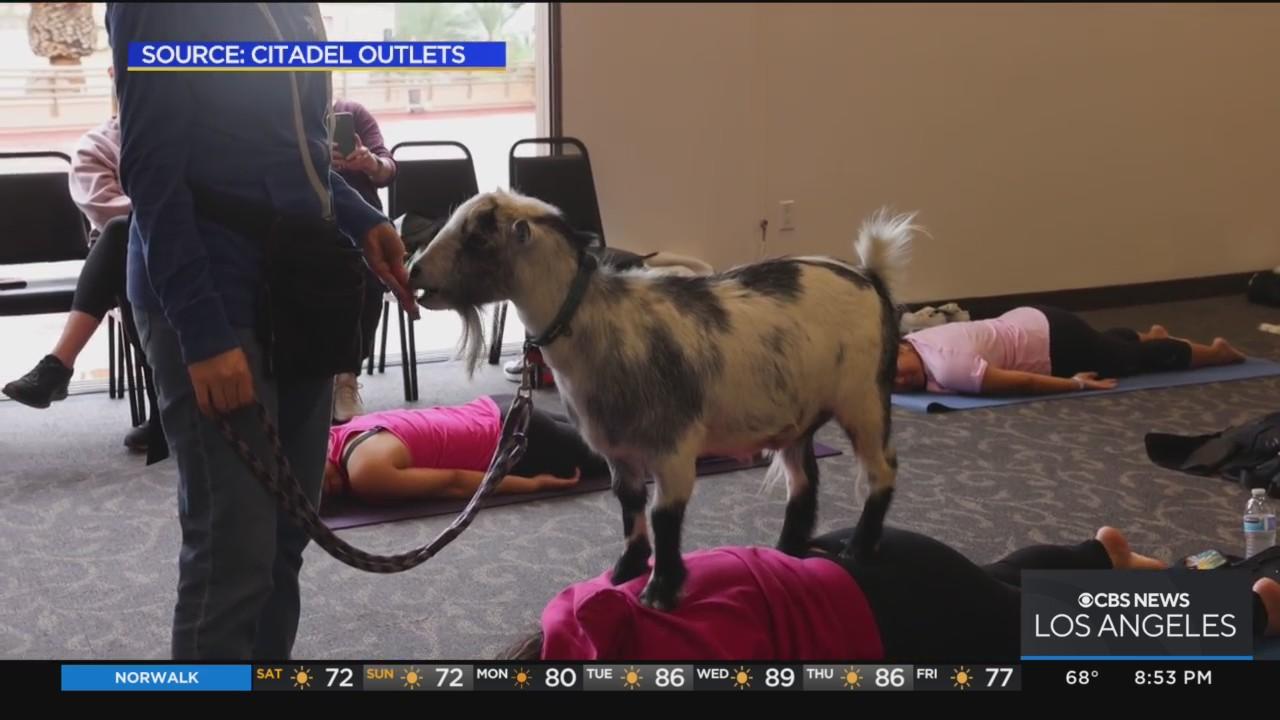 Dozens of women attending a yoga class, hosted in honor of Breast Cancer Awareness Month, were treated to a 30 minute yoga session - and goats - before a champagne brunch and a speech by a cancer survivor in Commerce.