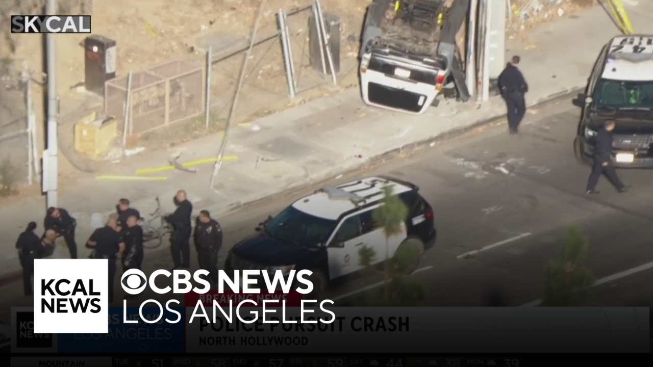 Brief police pursuit ends with rollover crash in North Hollywood
