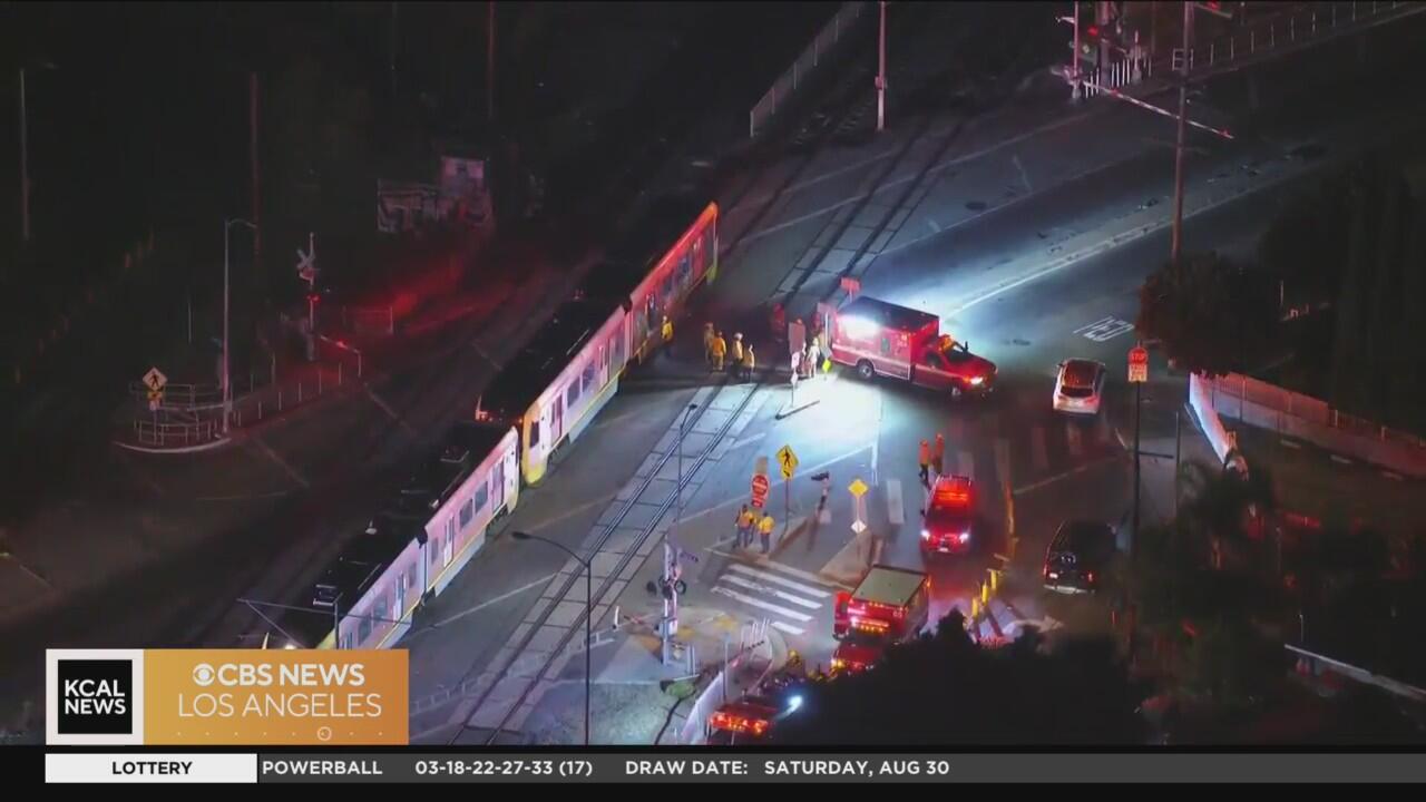 A car collided with a Metro train in South Los Angeles just after 10:30 p.m. Saturday. Amanda Starrantino reports.