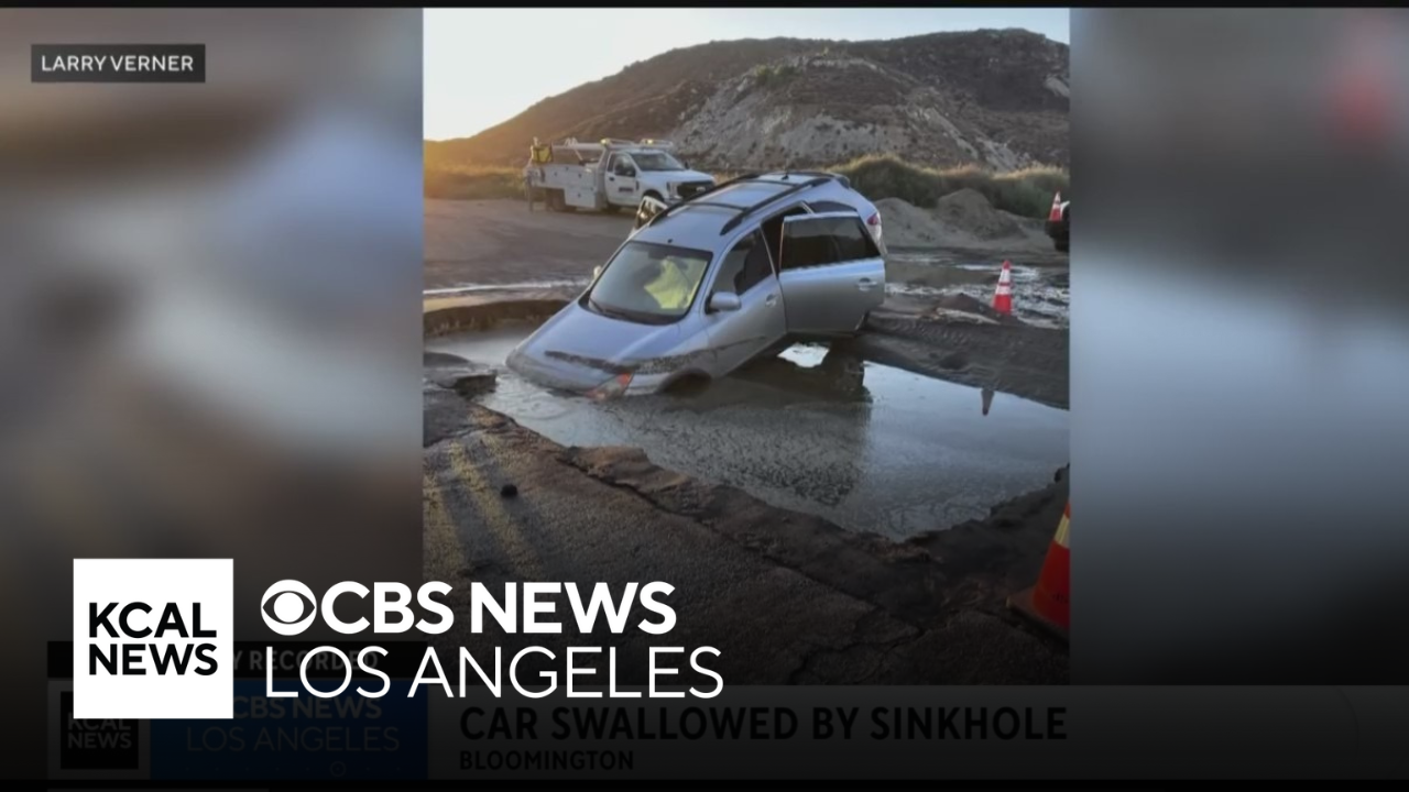 Car falls into sinkhole in Bloomington after driving around construction cones