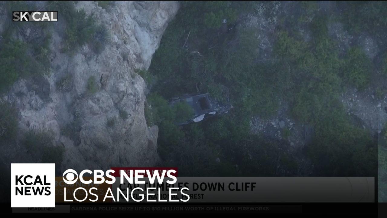 Car tumbles down cliff in Angeles National Forest