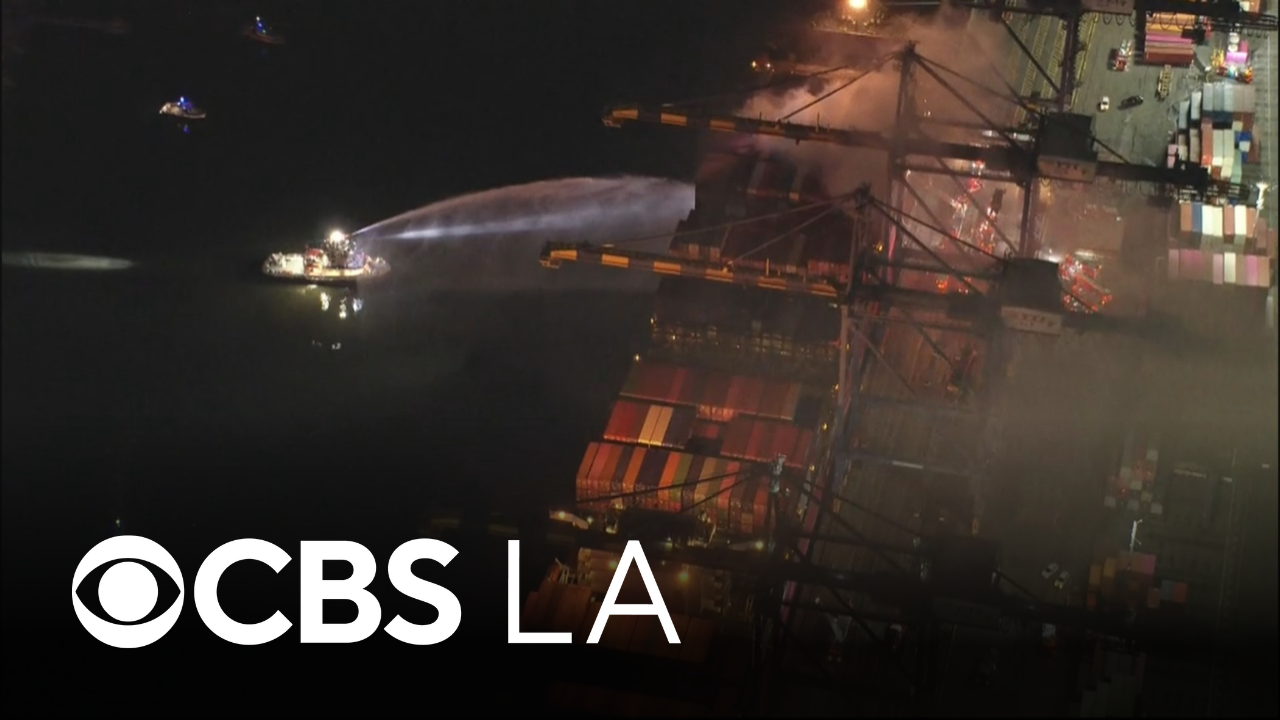 Cargo ship catches on fire at the Port of Los Angeles