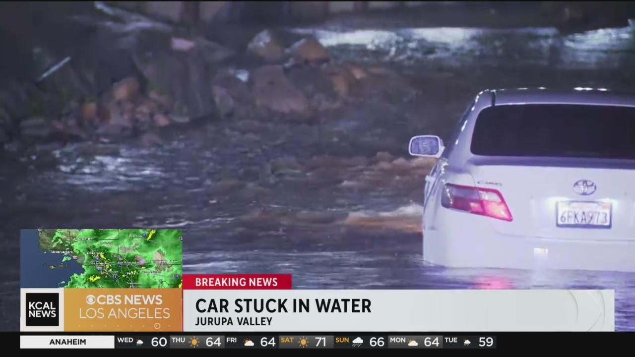Drivers got stuck overnight in the wet weather. One driver had to be rescued by firefighters on Limonite near Beach in Jurupa Valley, and two cars were stuck in a mudslide on La Brea near Don Lorenzo in Ladera Heights.