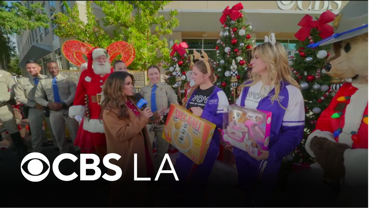 CBS LA's Kalyna Astrinos shares the Holiday joy during the CHiPs For Kids Toy Drive with Coach Campanelli and Goldie Collins from 'Women of Wrestling'.