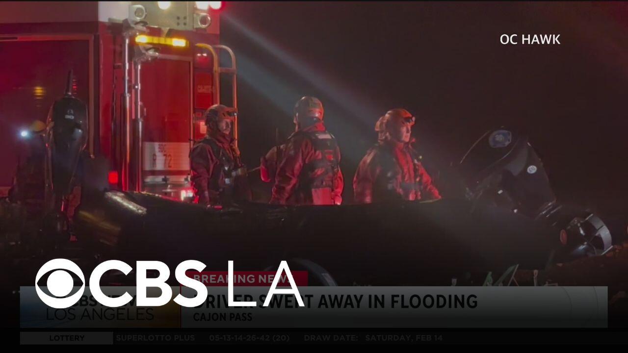 Crews continue search for driver swept away in Cajon Pass in Fullerton