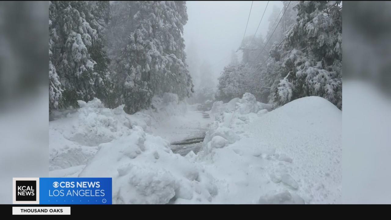 Crews plow snow out of San Bernardino mountain roads