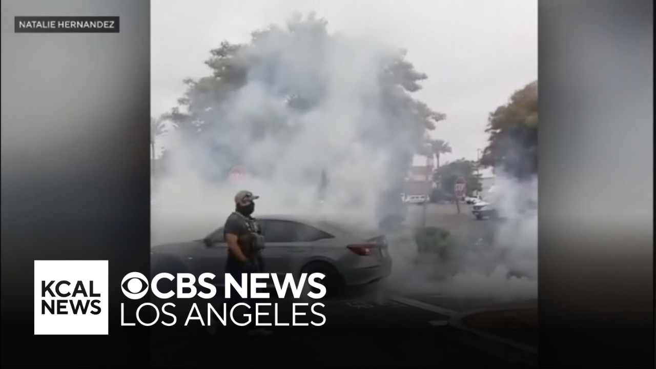 Federal agents deployed smoke grenades on a small crowd during an immigration operation in Pico Rivera on Friday. Jasmien Viel reports.