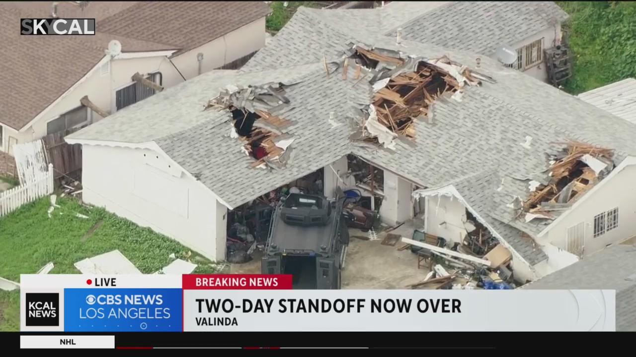 Laurie Perez reports from Valinda, where a more than 48-hour long standoff with an armed shooting suspect came to an end Sunday afternoon when the suspect was reportedly found dead by suicide, according to city officials.