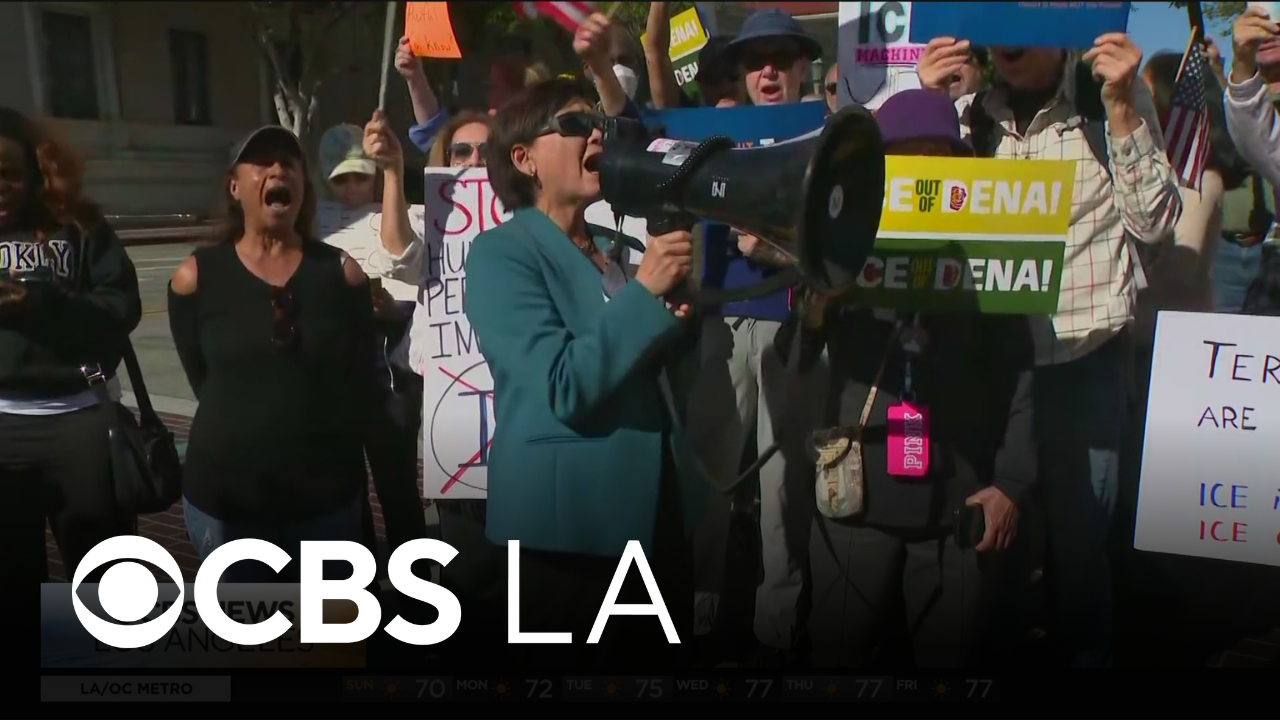Demonstrators gather for "ICE out of Pasadena" protest