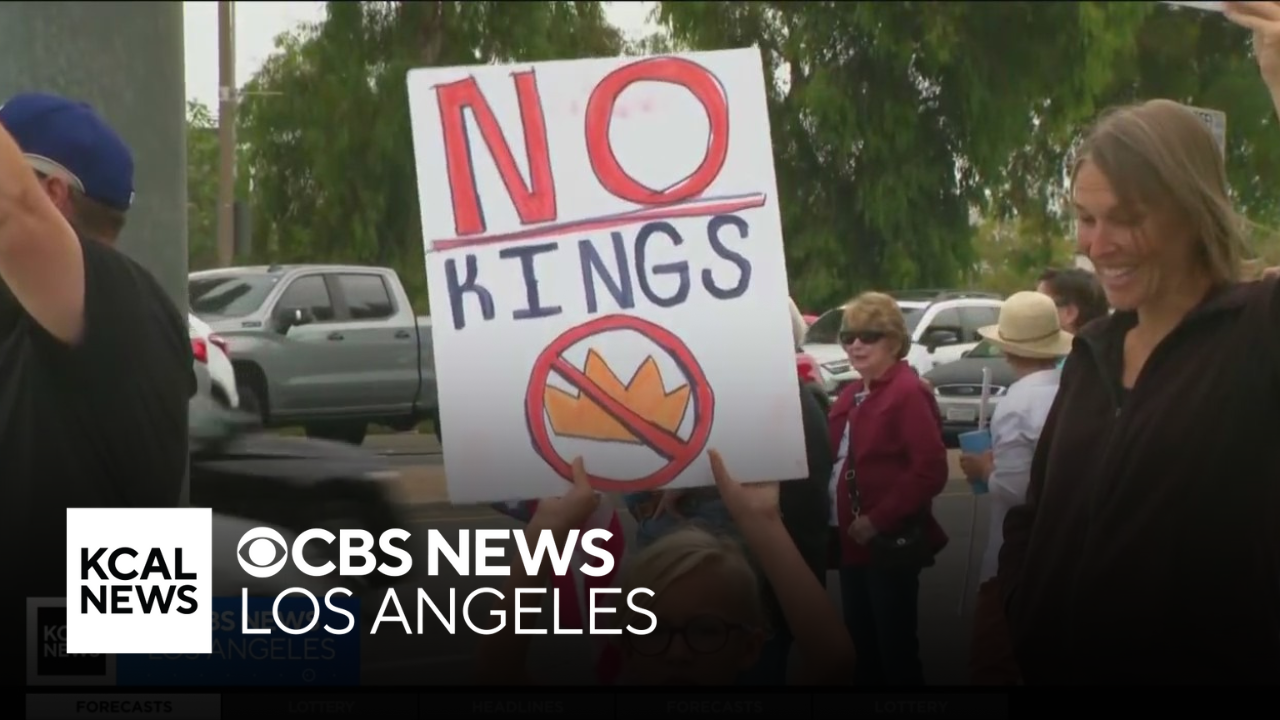 Dozens of demonstrators gathered in Santa Clarita for a "Fight the Trump Takeover" rally.