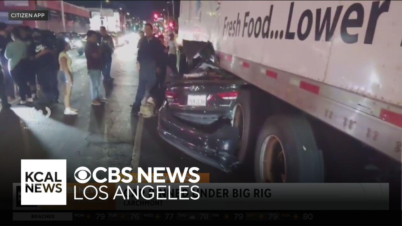 Driver is pinned under big rig in Larchmont after crashing into it