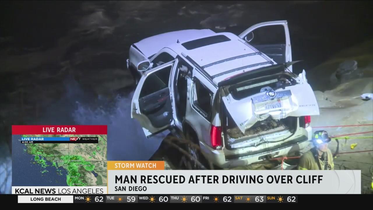 Driver rescued from SUV dangling over San Diego cliff