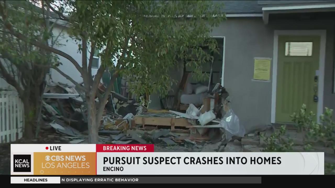Encino pursuit: 3-minute pursuit ends with crash into 2 houses