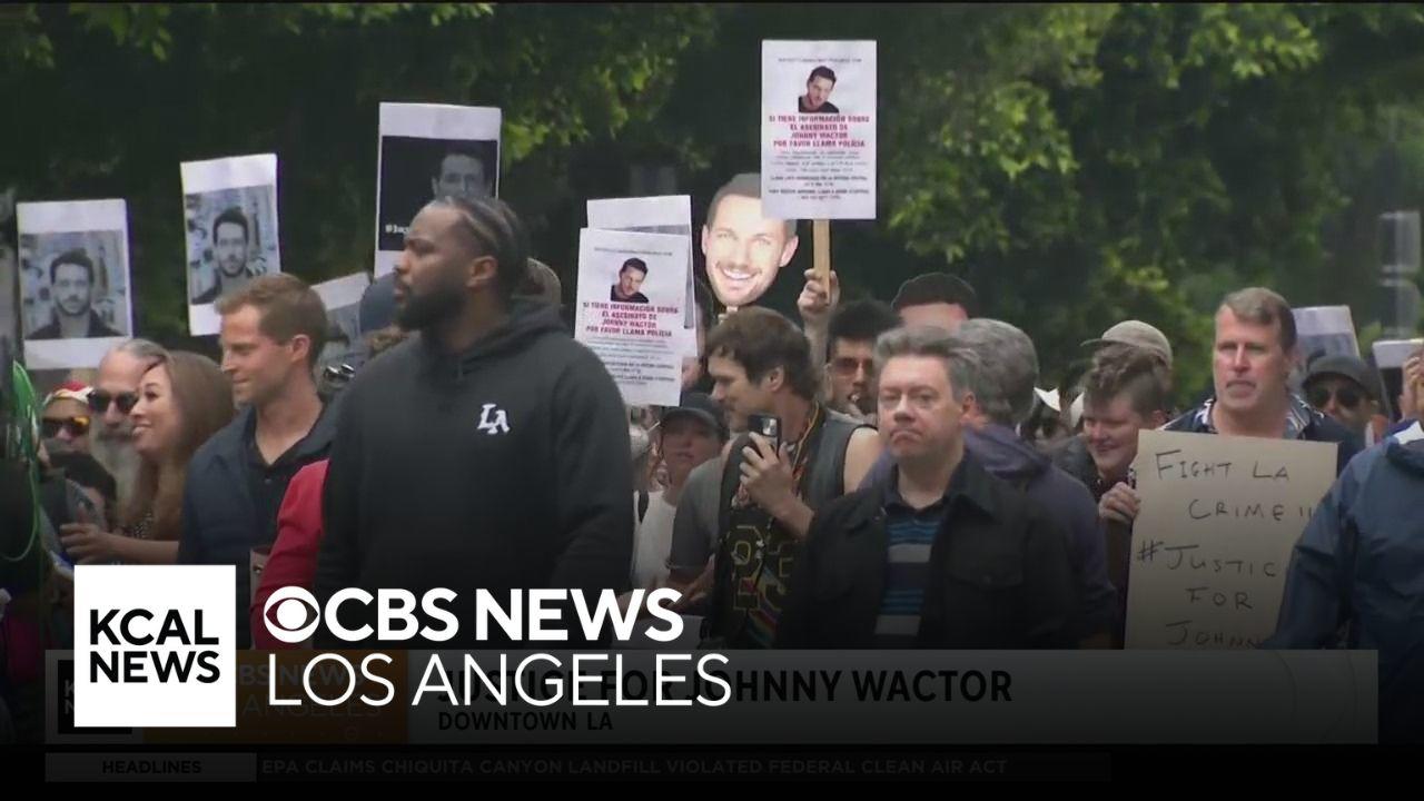 Family and friends of the late Johnny Wactor march Downtown Los Angeles