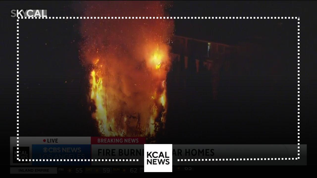 Fire burning near homes in Temple City