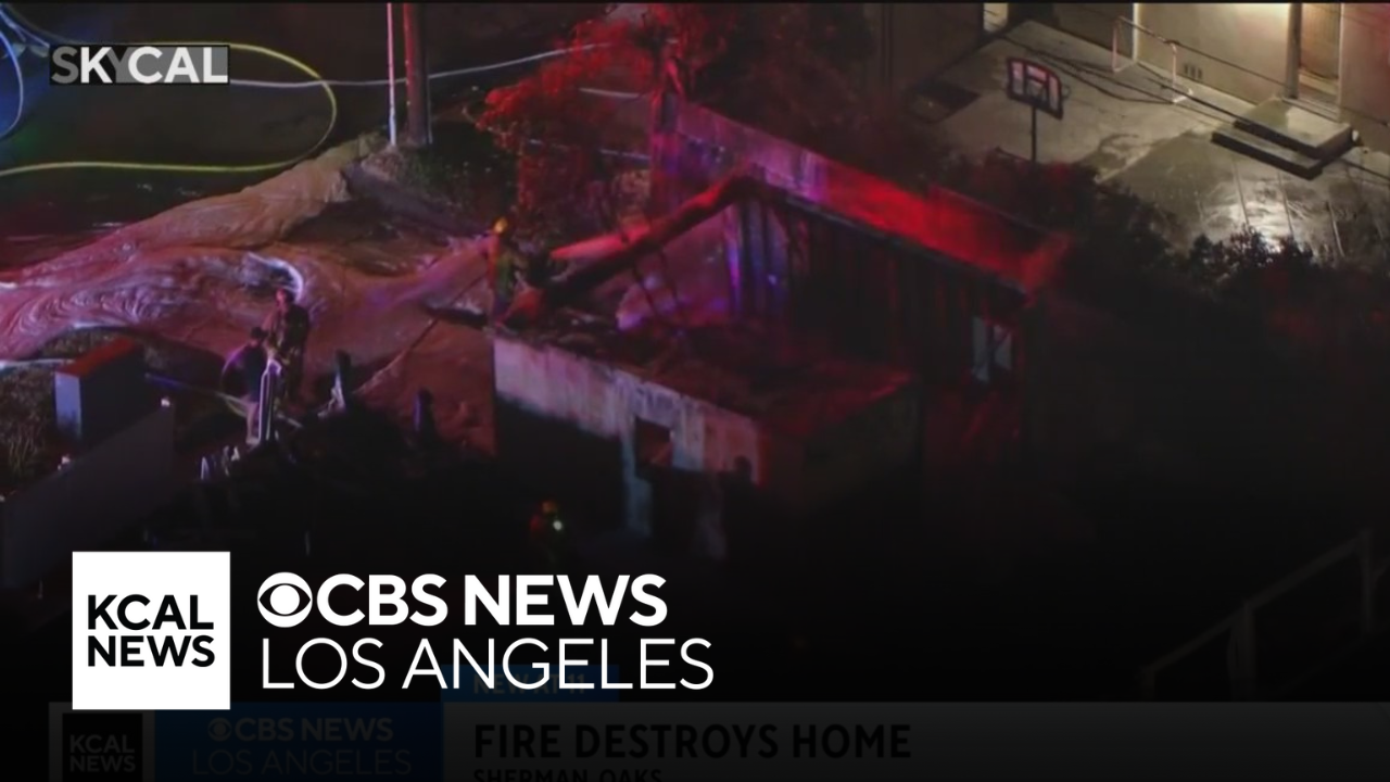 SkyCal flew over the spot of a fire that destroyed the extended garage of a Sherman Oaks home on Saturday.