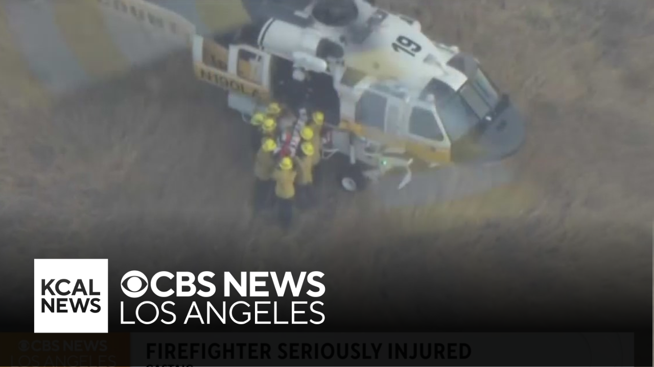 A Kern County Fire Department firefighter suffered major injuries when their truck rolled nearly 200 over a ridge and down a steep hillside in Castaic near the Canyon Fire on Friday night. Alys Martinez reports.