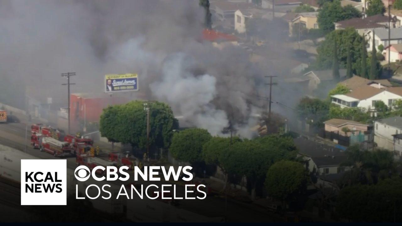 SkyCal was overhead as firefighters battled a large fire that had broken out at a tire shop in El Sereno on Saturday.