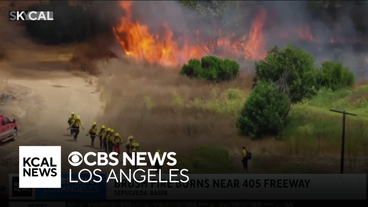 Firefighters quickly contain brush fire burning near 405 Freeway in Sepulveda Basin