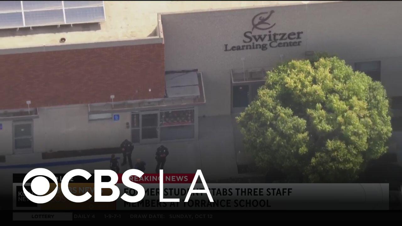Police arrest a former student of Switzer Learning Center in Torrance after allegedly stabbing three staff members at the school.